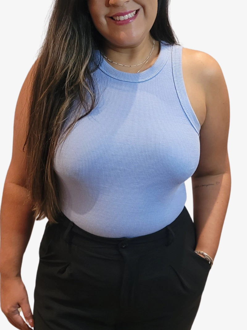 A Regata Feminina Canelada Azul Bebê é uma peça moderna e elegante para o seu guarda-roupa. Feita com algodão de alta qualidade, oferece conforto e estilo. Perfeita para compor looks versáteis e sofisticados. Ideal para todas as ocasiões.